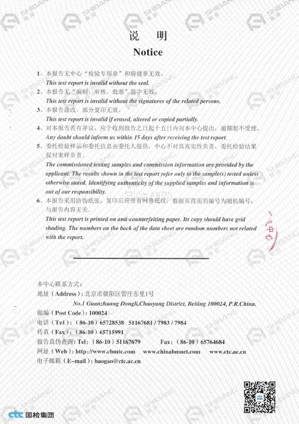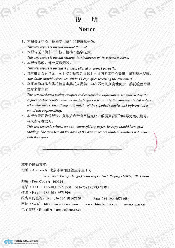 產品不僅通過了《我國建筑材料測試中心》檢測