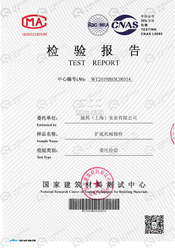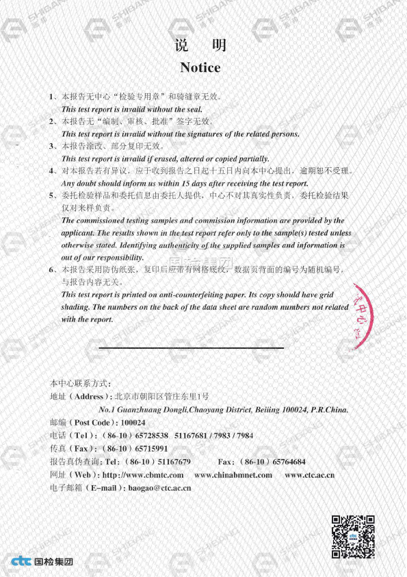 產品不僅通過了《我國建筑材料測試中心》檢測