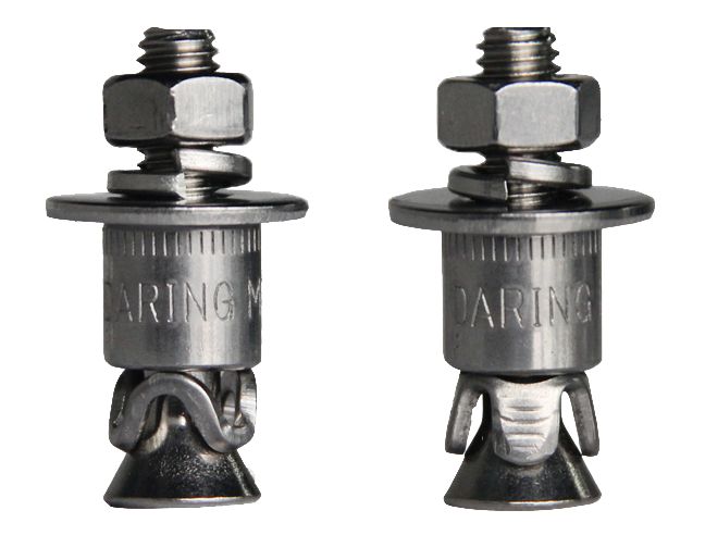 敲擊式背栓:現分為環式敲擊背栓和片式敲擊背栓,多用于厚型板材(一般為石材)的固定,厚度在25mm以上居多。