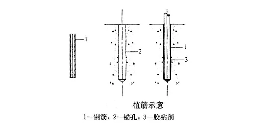 (1)植筋必須是全螺桿或者帶肋鋼筋,利用膠粘劑的粘結力實現受力,形成錨固作用;