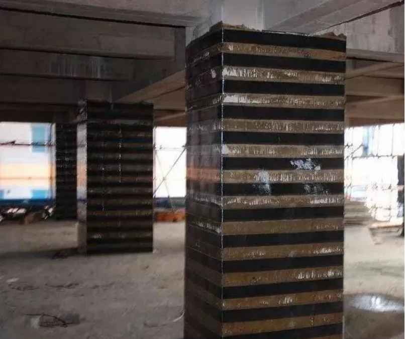 當受彎構件的斜截面受剪承載力不足時,應將碳纖維布粘貼成垂直于構件軸線方向的環形箍或其他有效的U型箍,不得采用斜向粘貼方式。